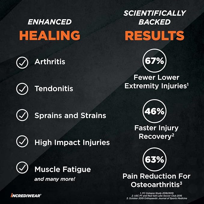 - Scientifically-Backed Results: Incrediwear products are supported by clinical research showing their effectiveness in reducing swelling, speeding up recovery times, and providing long-lasting relief. Incrediwear sleeves are proven to reduce recovery time by 46%, decrease injury-related downtime, and enhance overall comfort during the healing process. Users report significant improvements in elbow pain, including quicker recovery from tendonitis, sprains, and strains.