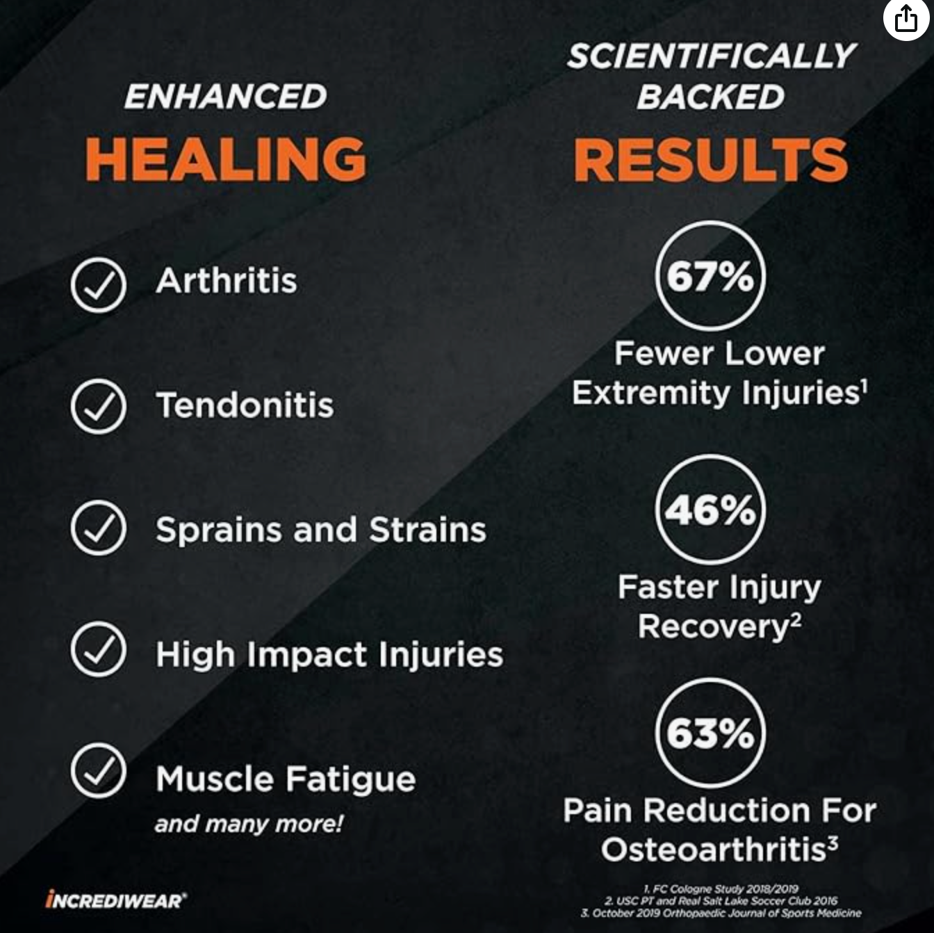 Incrediwear products are backed by scientific research and have proven effective in reducing time-loss for athletes by minimizing lower extremity injuries and accelerating recovery. Studies show a 67% reduction in injuries and a 46% faster recovery time for participants. Whether you're recovering from surgery or managing muscle fatigue, the Leg Sleeve helps get you back on your feet faster.
