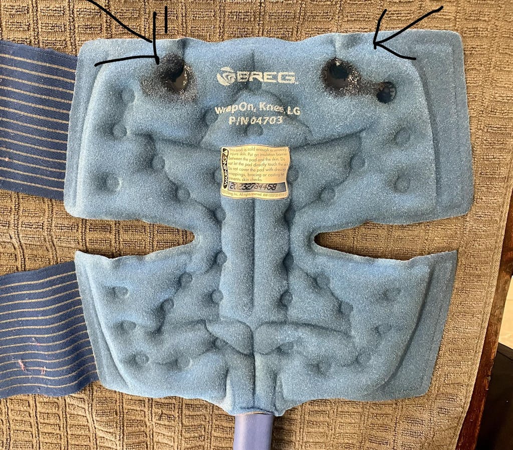**ATTENTION**: Please verify the connection type prior to ordering. If your hose connection looks exactly like this, then you are about to order the correct pad for your device. This connection type is for the Breg Polar Care GLACIER, but also works with the Breg® CUBE & CUB.
